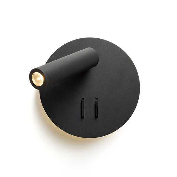Wall lamp with built-in LED and a rotating reflector, providing single-direction indirect lighting. The reflector and indirect lighting are controlled by separate switches on the base.