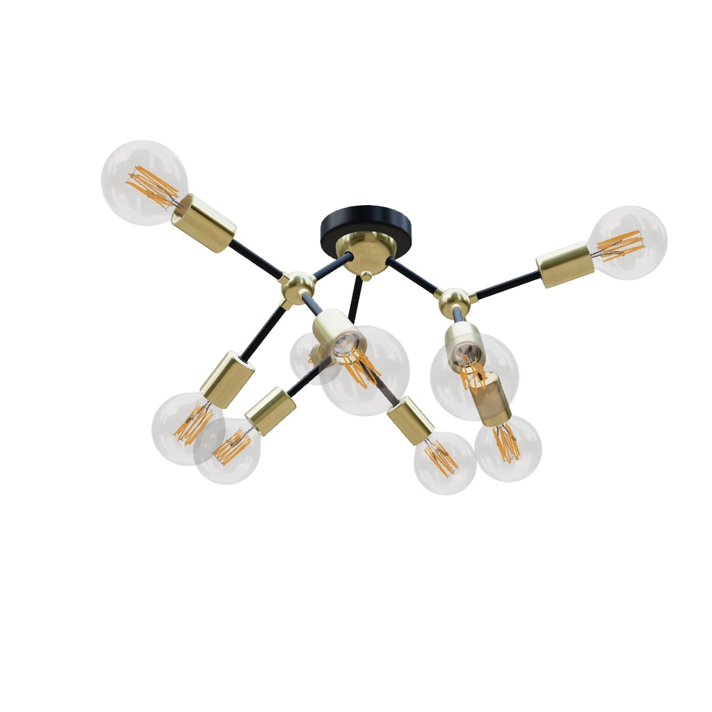 Designer ceiling lamp with decorative brass socket covers. Suitable for LED light sources with an E27-base.