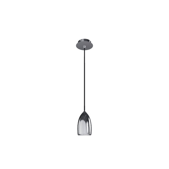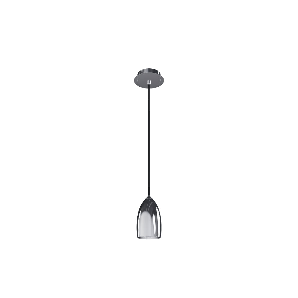 Pendant with a shade and ceiling base in chrome or matte nickel. Supplied with a black textile cable.