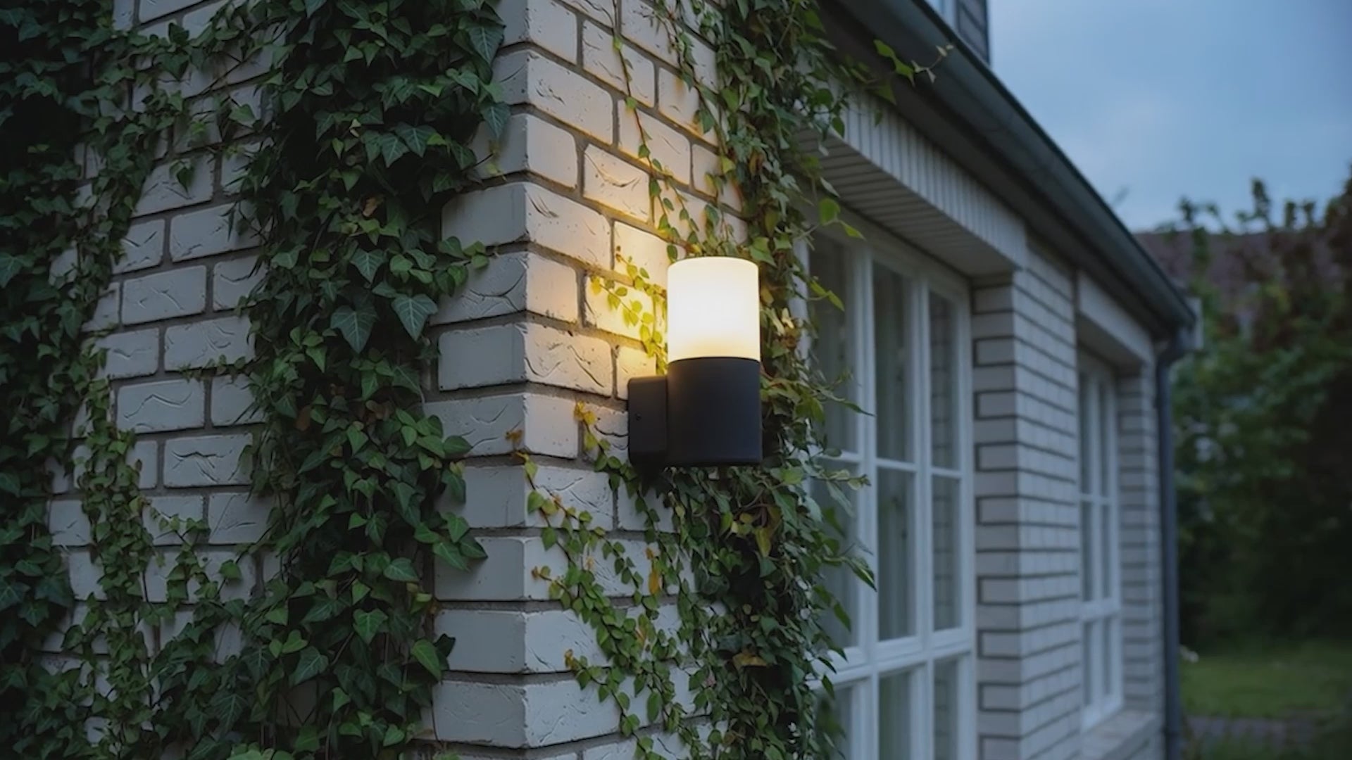 Outdoor wall light with an opal-colored shade and E27 socket for LED light sources.