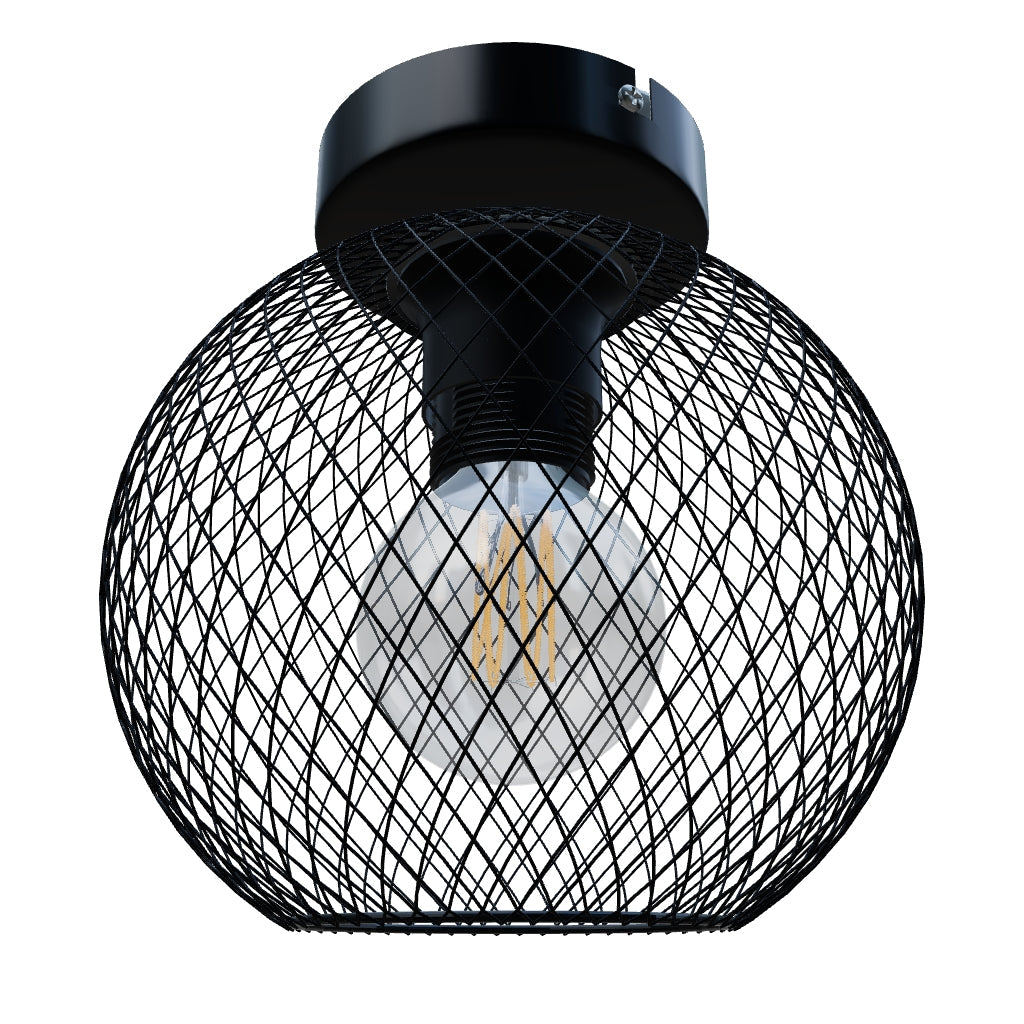 Ceiling light in the shape of a sphere made from fine perforated metal, suitable for decorative LED light sources with an E27 base. Maximum permitted diameter of light sources is 8 cm.