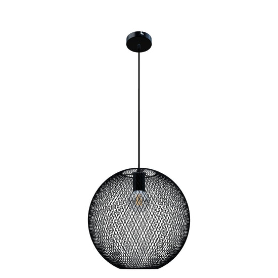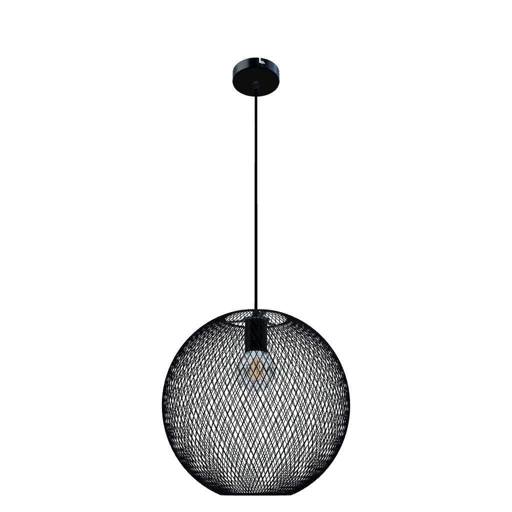 A pendant light fixture in the shape of a sphere made of fine wire mesh, suitable for a decorative LED bulb with an E27 socket. Maximum permitted diameter of light sources is 9.5 cm.