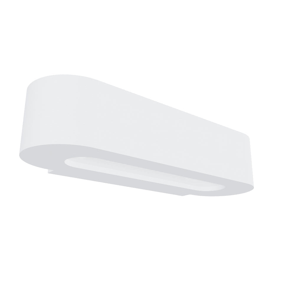 Plaster wall lamp for UP/DOWN illumination. The bottom of the lamp has a satin glass cover and the surface can be colored with interior paint.