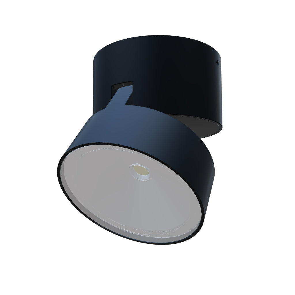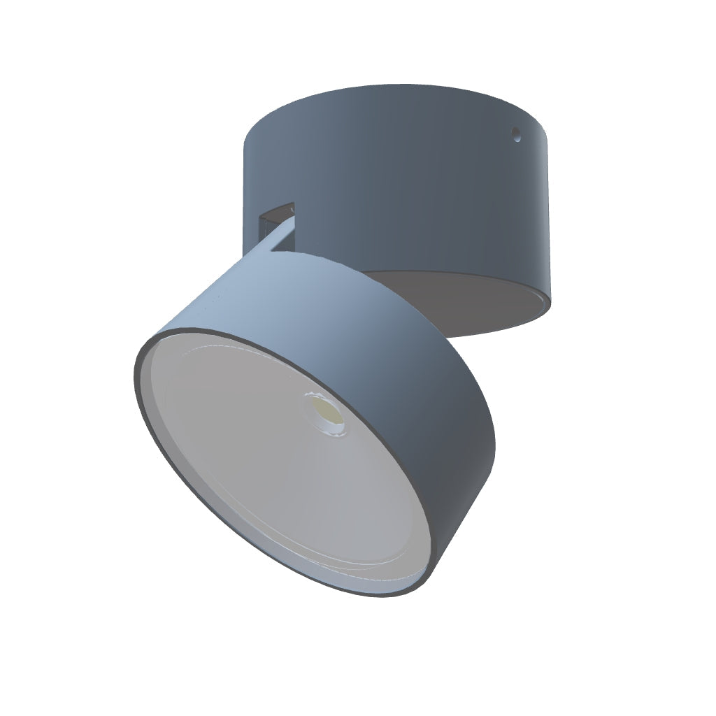 Outdoor surface-mounted LED spotlight with a tilt function that can be mounted on the ceiling or wall.
