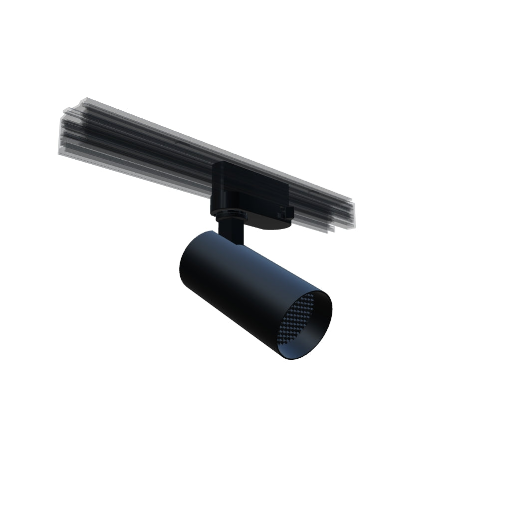 Cylindrical spotlight with a GU10 socket for 3-circuit tracks.