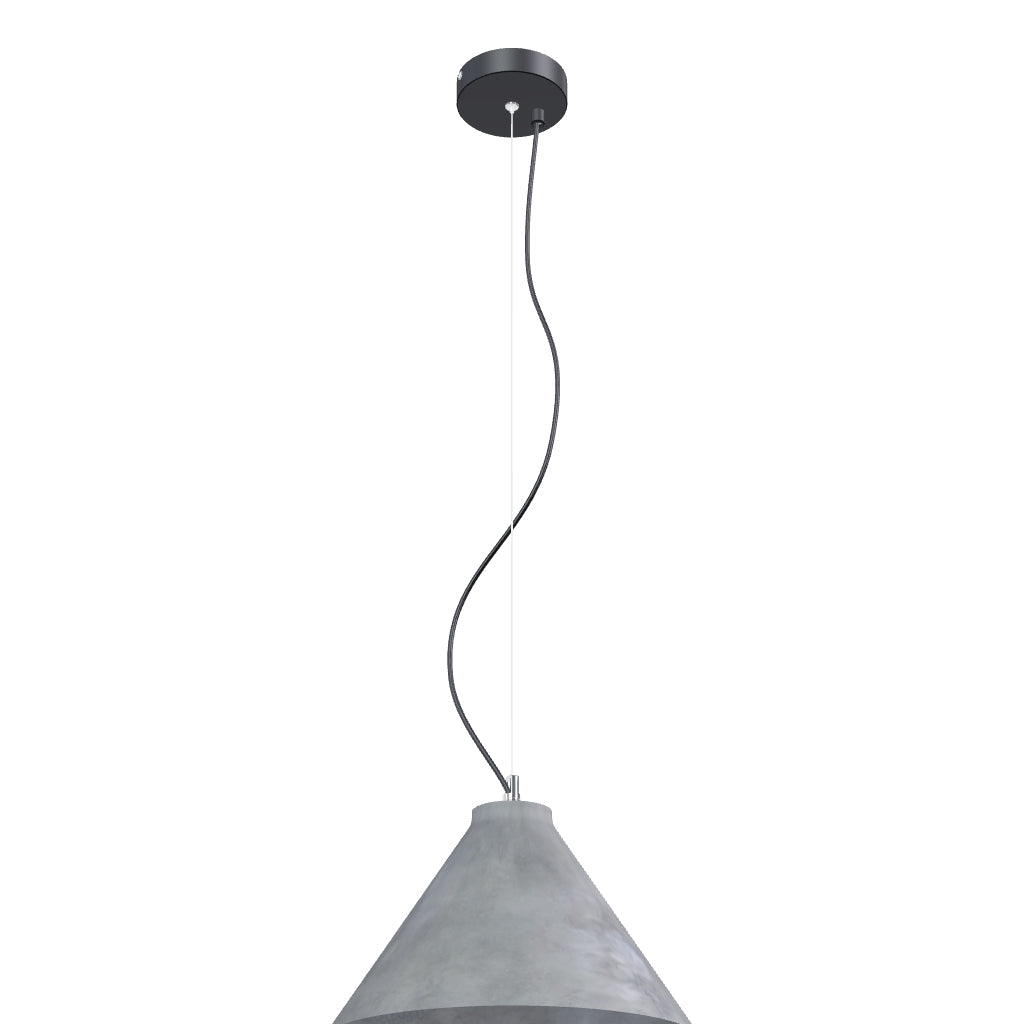 Solid concrete pendant suspended on a wire which is separated from the cable. For E27 light sources.
