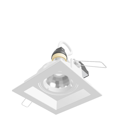 Čtvercové zápustné svítidlo pro montáž do sádrokartonových stropů s možností naklopení na žárovku s paticí GU10.