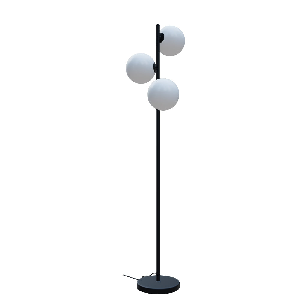Stojanová lampa se třemi skleněnými stínidly z opálového skla na černě lakovaném podstavci. Vhodné pro LED světelné zdroje G9.