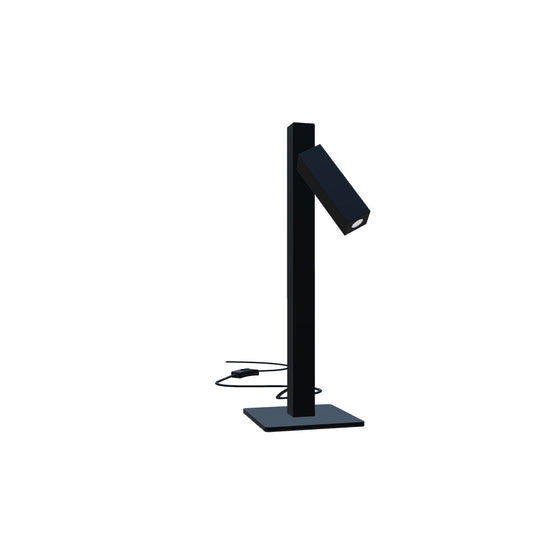 Stolní lampa v hranatém designu s jedním nastavitelným LED reflektorem.