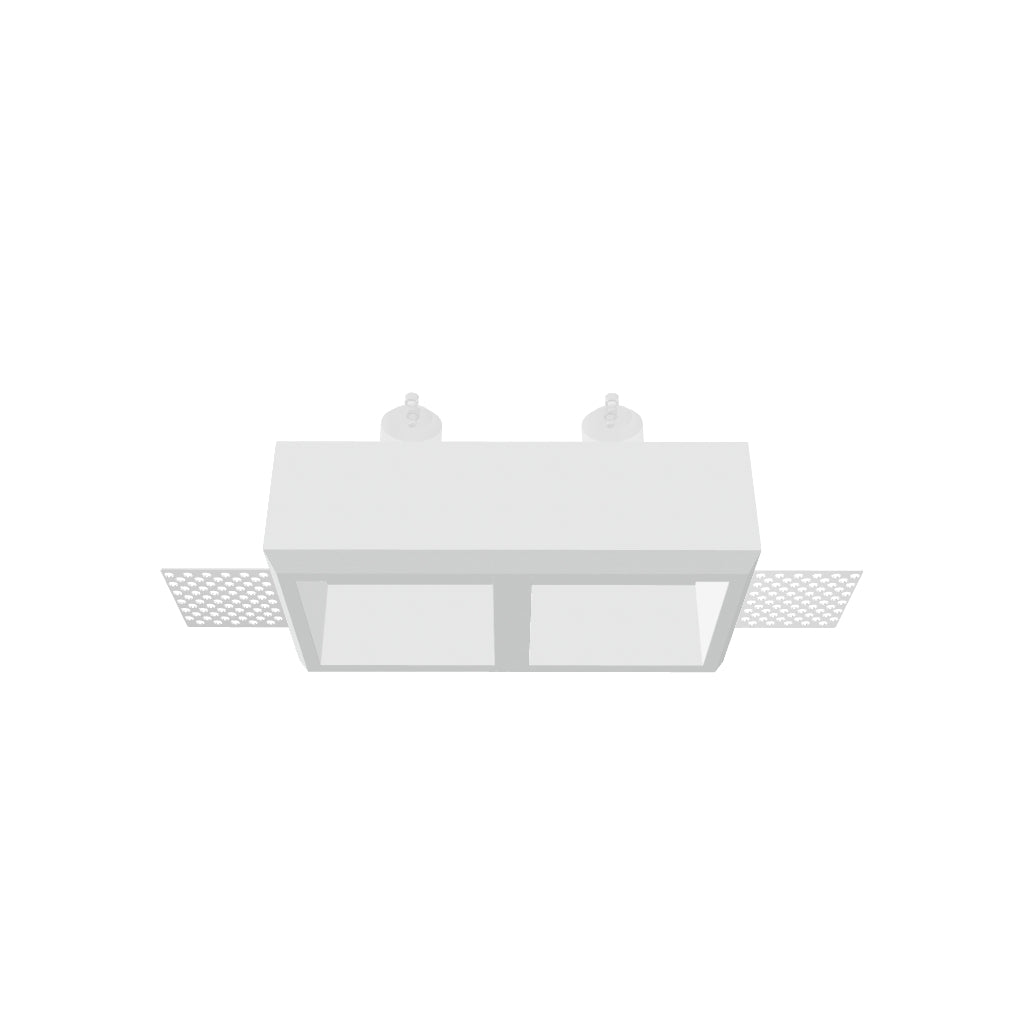 Sádrové svítidlo se dvěmi čtvercovými otvory. Bezrámečková úprava. Svítidlo je možné přemalovávat interiérovými barvami. Montáž pouze do sádrokartonu.