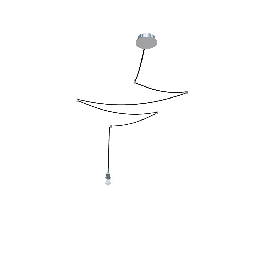 Variabilní sada vhodná pro samostatné použití s designovou žárovkou nebo zavěšení lehkých stínidel. Sada lze uchytit na strop nebo stěnu pomocí úchytek umístěných na černém textilním kabelu. Sada obsahuje 4 kusy černých plastových úchytek nebo 4 kovové pochromované úchytky. Úchytky lze objednat i samostatně. Vhodné pro stínidla: ARISTA, ASPRO, DOUBLE, JAKARANDA, RON.